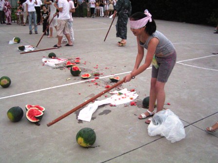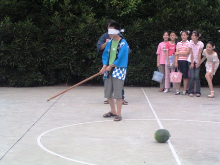 暑期班同學在進行(xíng)劈西(xī)瓜比賽 |