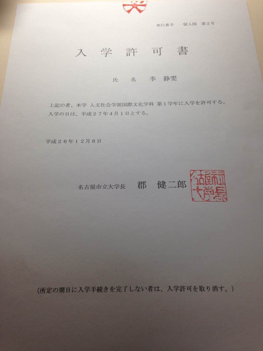 李靜(jìng)雯考取名古屋市(shì)立大(dλδ∑₹à)學